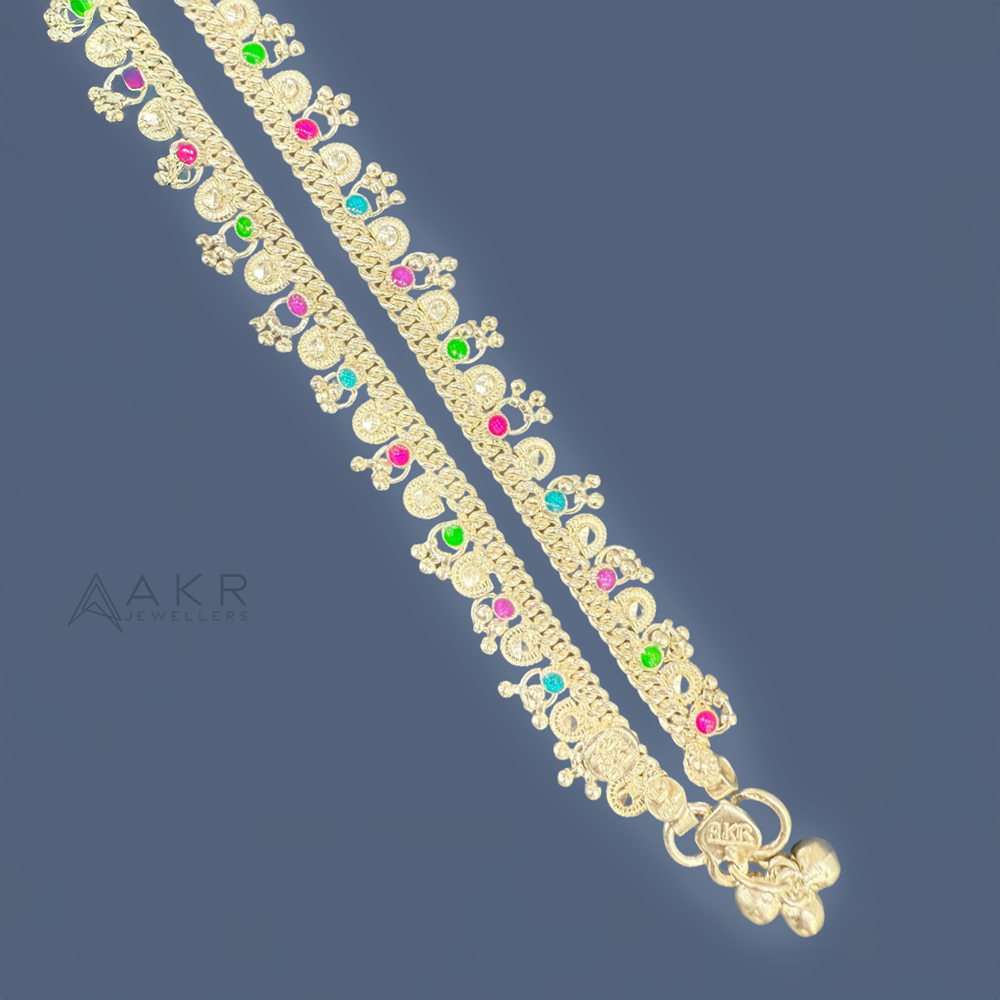 Loose Battani Nimma anklets with bold traditional motifs and vibrant stones, perfect for weddings, festivals, and cultural celebrations.