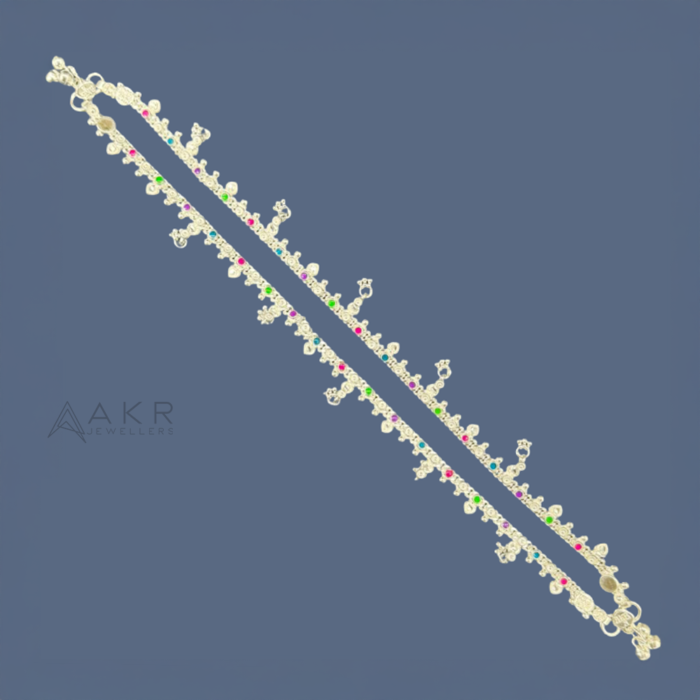 Design: Traditional handcrafted anklet with intricate single-dot motifs and dangling ornamental elements