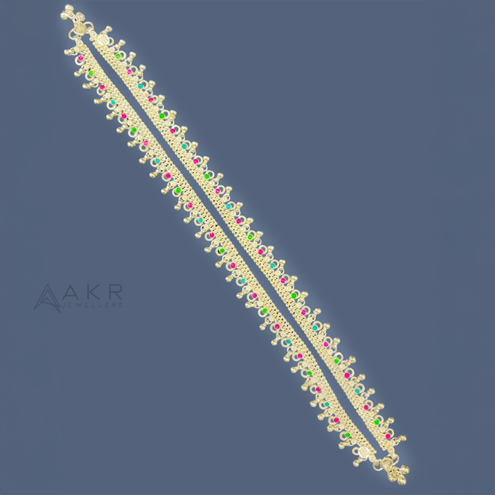 Pai Miriyam Spring Challa anklets with elegant spring design, colorful stone highlights, and classic ethnic appeal for special occasions.