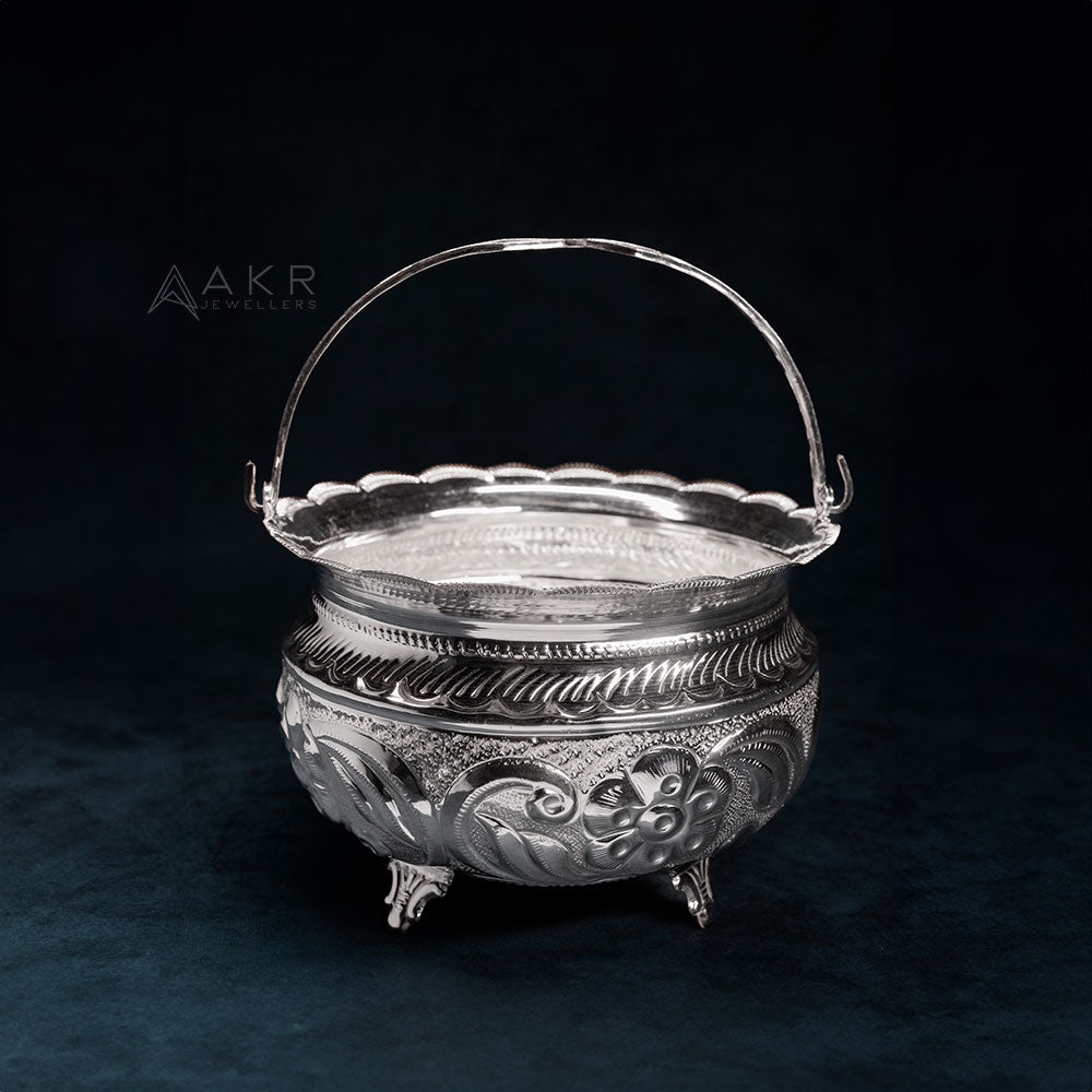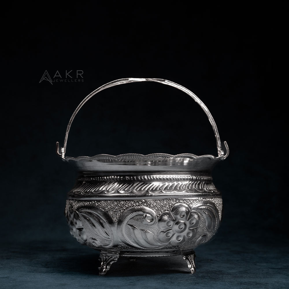 Beautifully handcrafted in 92.5% pure silver, this Flower Basket adds a divine touch to your pooja rituals. Ideal for offering fresh petals during worship or festive ceremonies.