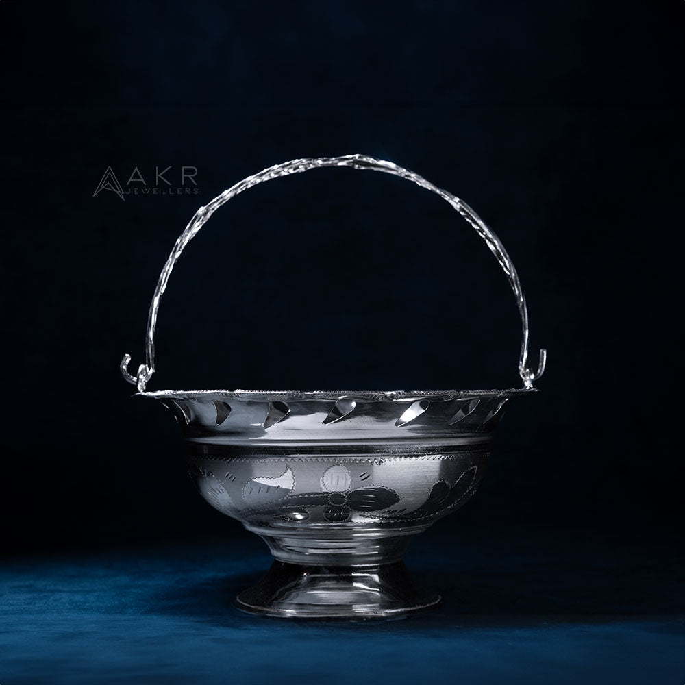 Crafted from high-quality 92.5% pure silver, this elegant Flower Basket is ideal for devotional offerings or décor. Its intricate design symbolizes purity, grace, and traditional craftsmanship in every detail.