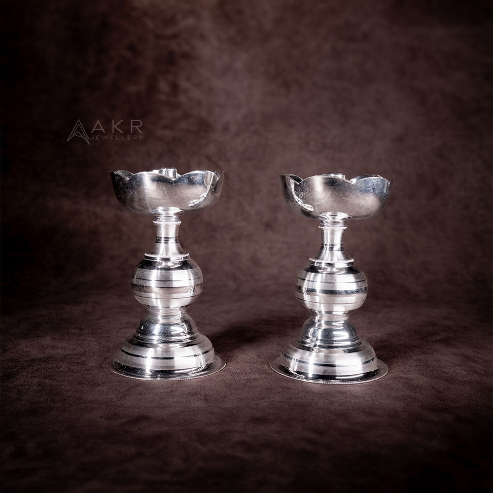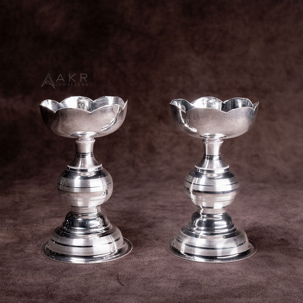 Product: Flower Kundulu Traditional Silver Oil Lamps (Set of 2)