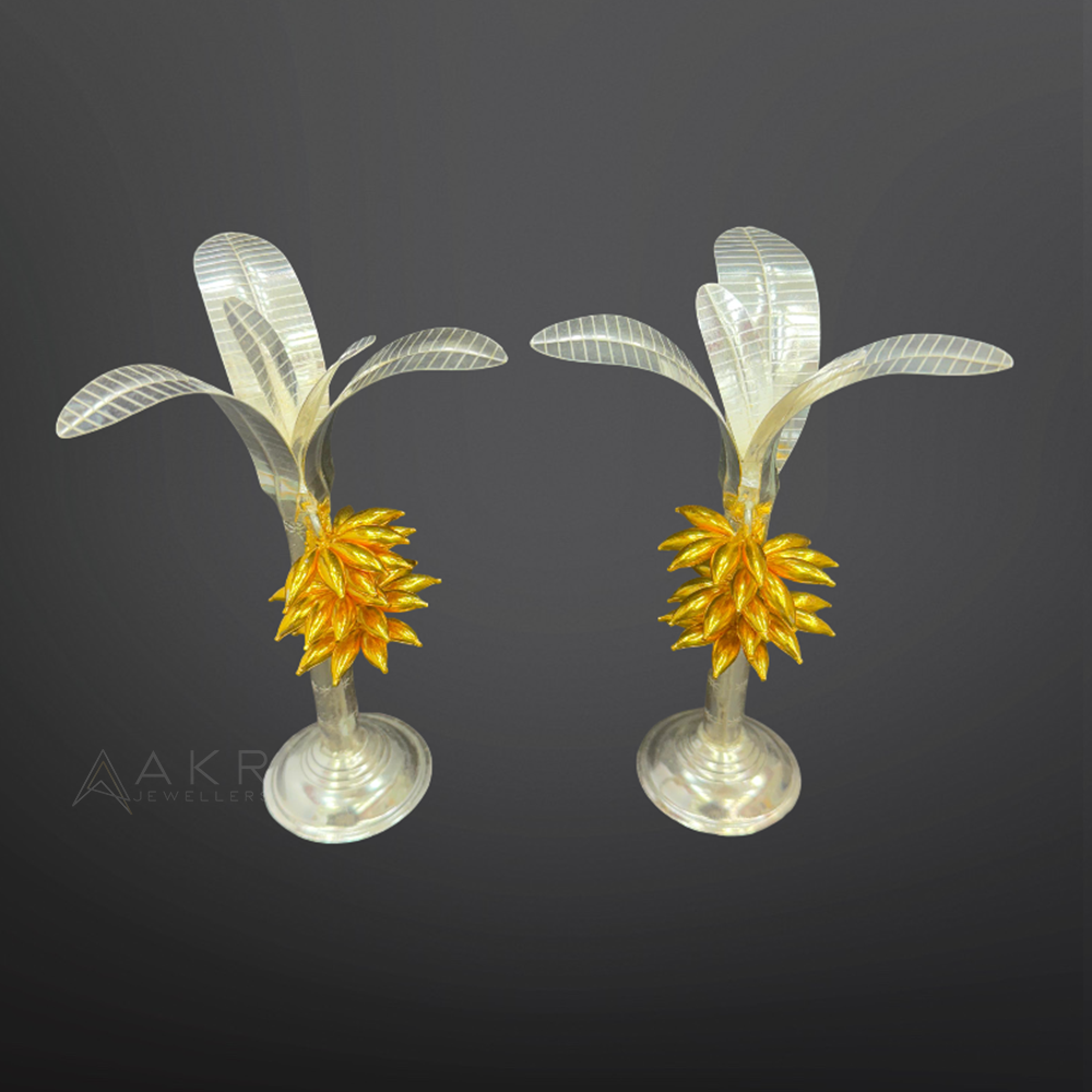 Product Name: Gold-Coated Silver Banana Trees (Pair – Elegant Silver Finish)