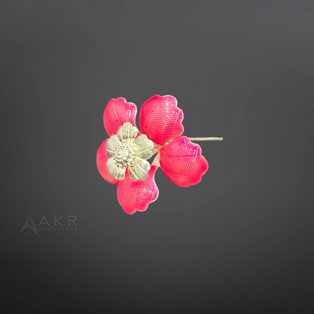 Elegant pink enamel-coated silver flower with intricate center detailing, ideal for temple decorations or silver banana tree embellishment.