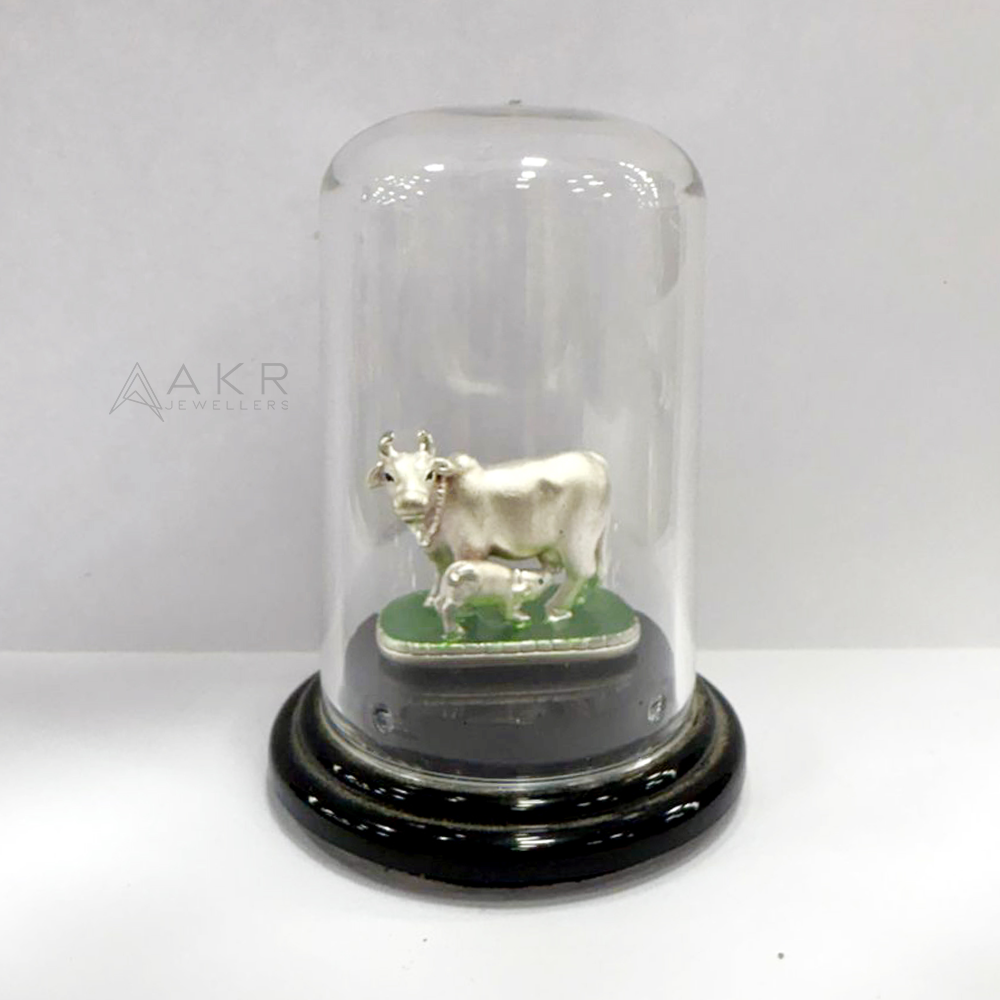 Gracefully crafted Govu idol in glass dome, symbolizing purity, nourishment, and divine blessings. Ideal for home, pooja, or gifting.